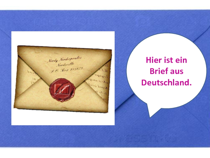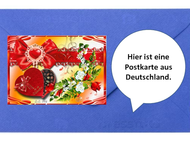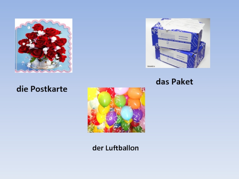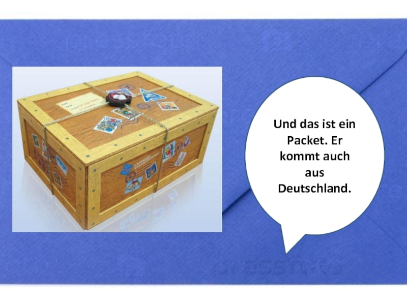 Hier ist die Post: ein Brief, eine Postkarte, ein Paket. Der Brief ist aus Deutschland. Er ist aus Berlin. Die Postkarte ist auch aus Berlin. Sie ist schön und bunt. Das Paket ist klein. Das ist ein Päckchen (посылочка). Hier sind viele Fotos. Sie sind auch bunt.