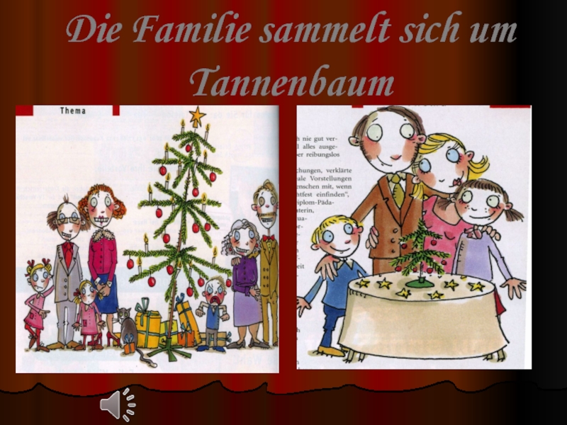 Слайд 13Die Familie sammelt sich um Tannenbaum
