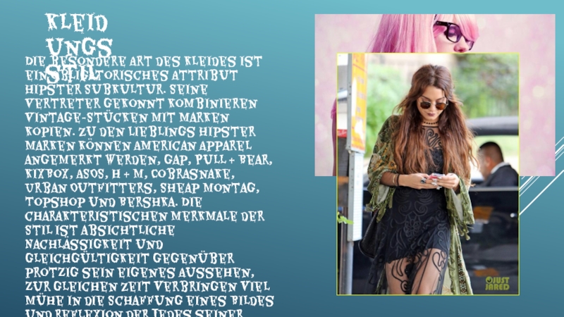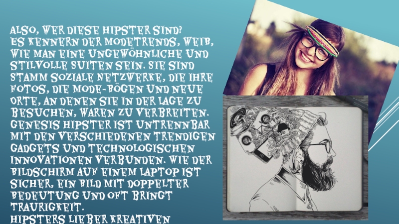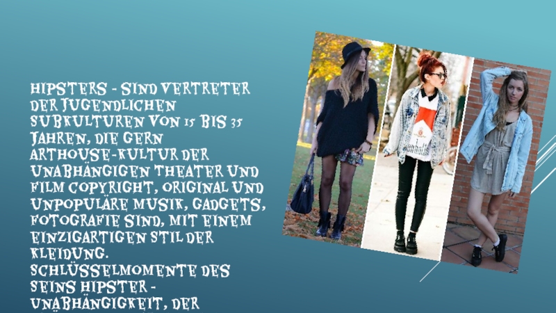Слайд 2Hipsters - sind Vertreter der jugendlichen Subkulturen von 15 bis 35
