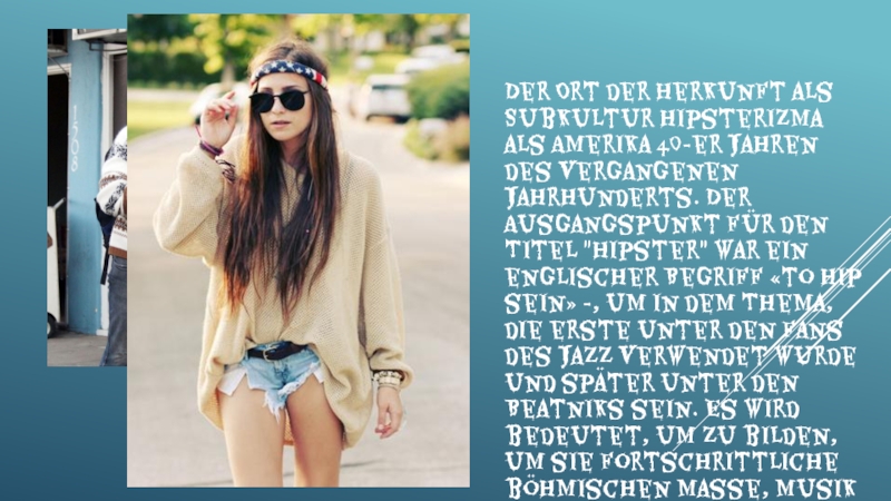 Слайд 3Der Ort der Herkunft als Subkultur hipsterizma als Amerika 40-er Jahren