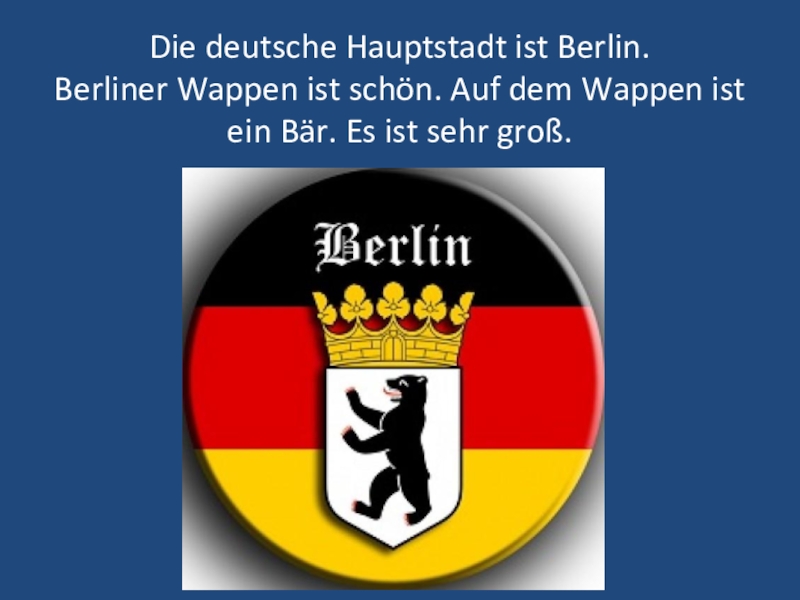 Слайд 2 Die deutsche Hauptstadt ist Berlin. Berliner Wappen ist schön. Auf dem