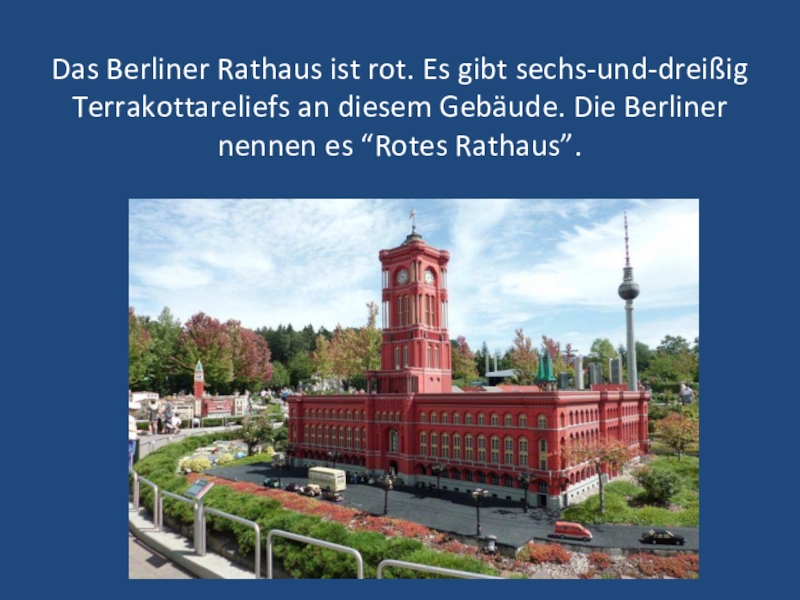 Слайд 4 Das Berliner Rathaus ist rot. Es gibt sechs-und-dreißig Terrakottareliefs an diesem