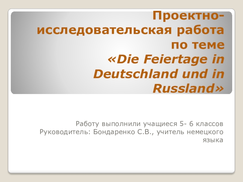 Руководитель: Бондаренко С.В., учитель немецкого языка