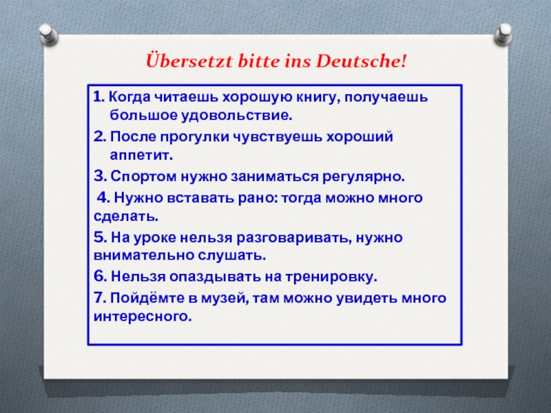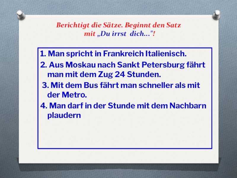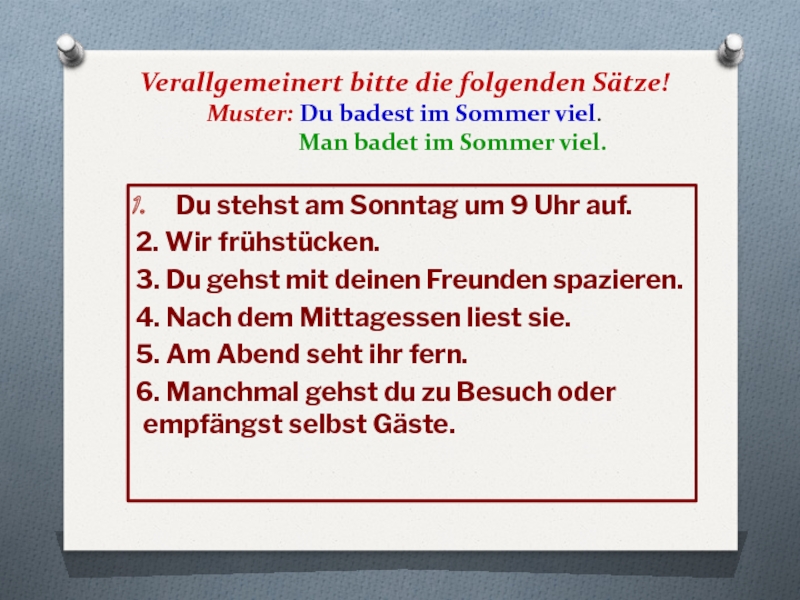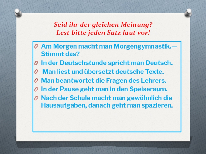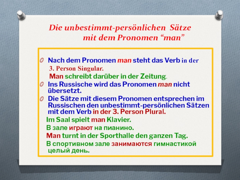 Die Sätze mit diesem Pronomen entsprechen im Russischen den unbestimmt-persönlichen Sätzen mit dem Verb in der 3. Person Plural.