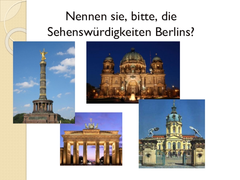 Слайд 6Nennen sie, bitte, die Sehenswürdigkeiten Berlins?