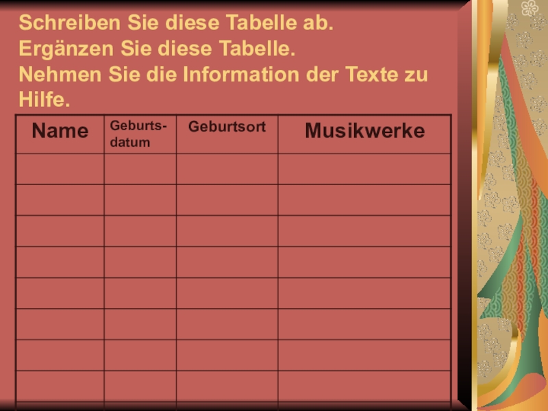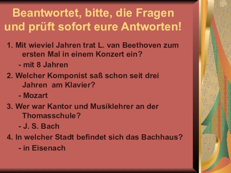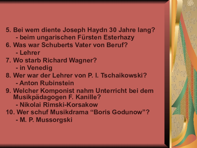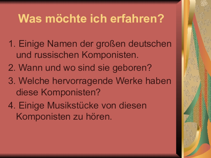 4. Einige Musikstücke von diesen Komponisten zu hören.
