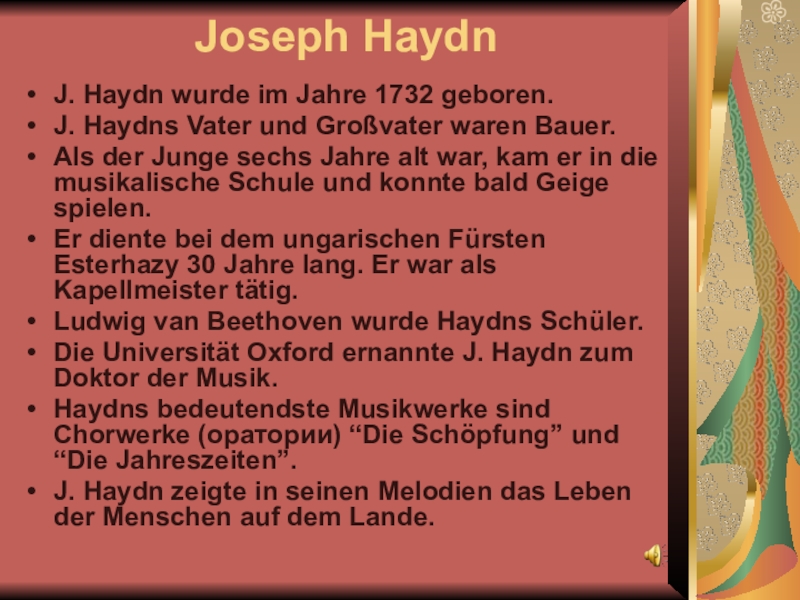 J. Haydn zeigte in seinen Melodien das Leben der Menschen auf dem Lande.