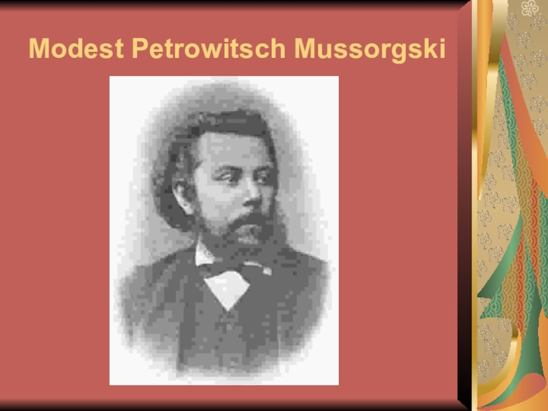 In der Mitte der 60. Jahren schuf Mussorgski Etüde zu den Opern “Swetik Sawischna”, “Weise”, “Seminarist” usw.