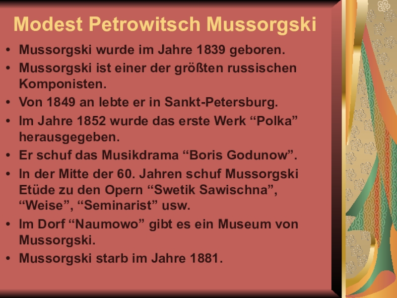 10. Wer schuf Musikdrama “Boris Godunow”?