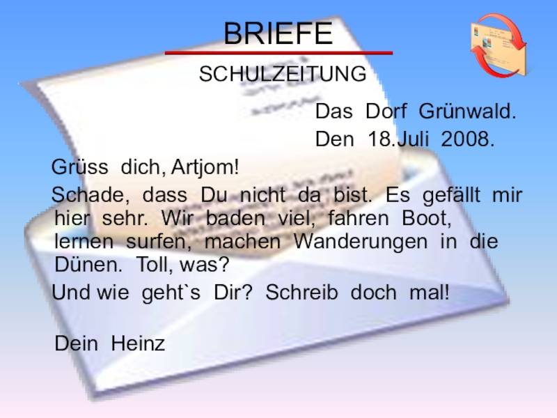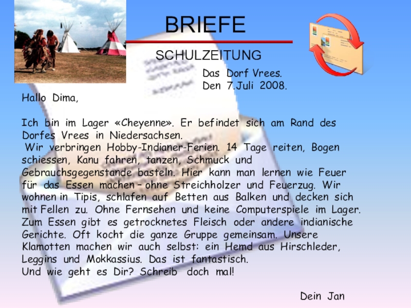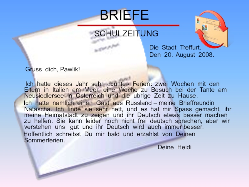 Hoffentlich schreibst Du mir bald und erzahlst von Deinen Sommerferien.