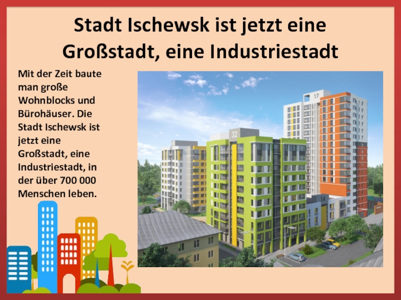 Слайд 9Stadt Ischewsk ist jetzt eine Großstadt, eine Industriestadt