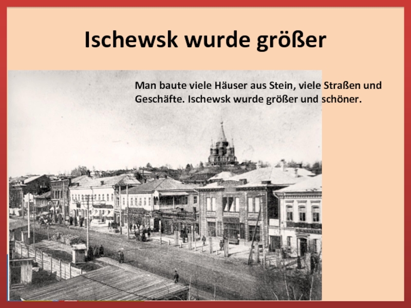 Ischewsk wurde größerMan baute viele Häuser aus Stein, viele Straßen und Geschäfte. Ischewsk wurde größer und schöner.