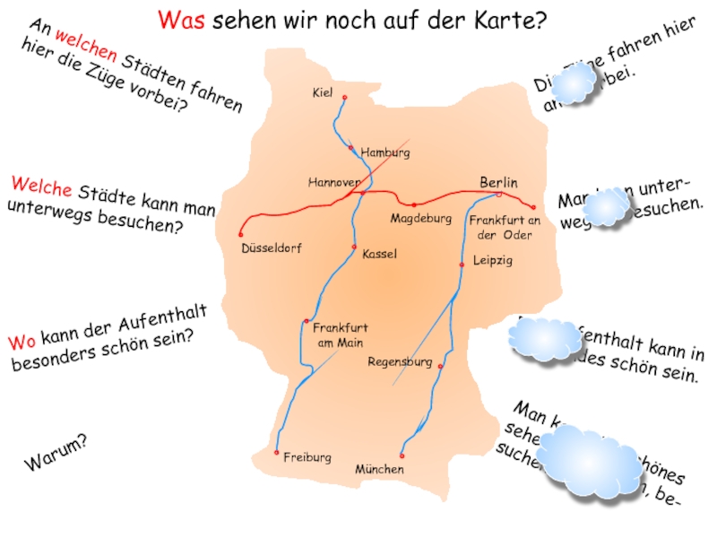 3. Der Zug fährt an Städten und Dörfern, an Burgen, Türmen und anderen roman-