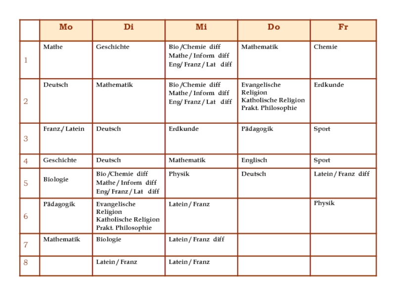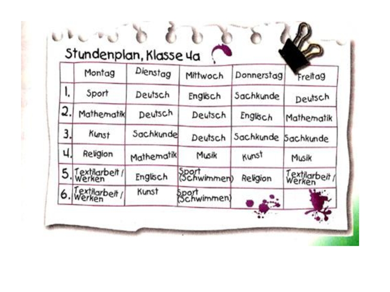 Презентация, доклад по немецкому языку на тему Расписание уроков в немецких школах УКМ И. Л. БИМ 8,9 класс