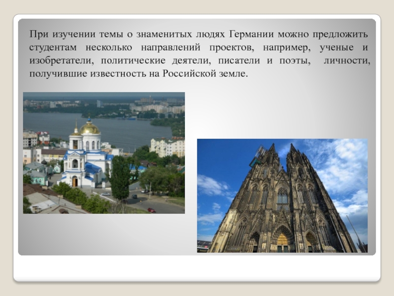 Слайд 6При изучении темы о знаменитых людях Германии можно предложить студентам несколько