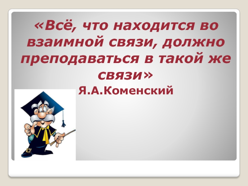 Слайд 2«Всё, что находится во взаимной связи, должно преподаваться в такой же