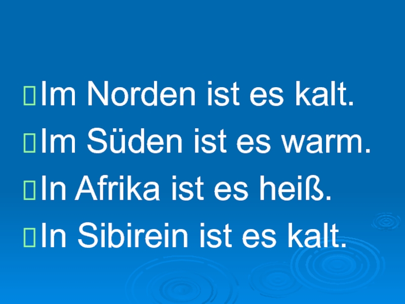 Im Norden ist es kalt.Im Süden ist es warm.In Afrika ist es heiß.In Sibirein ist es kalt.