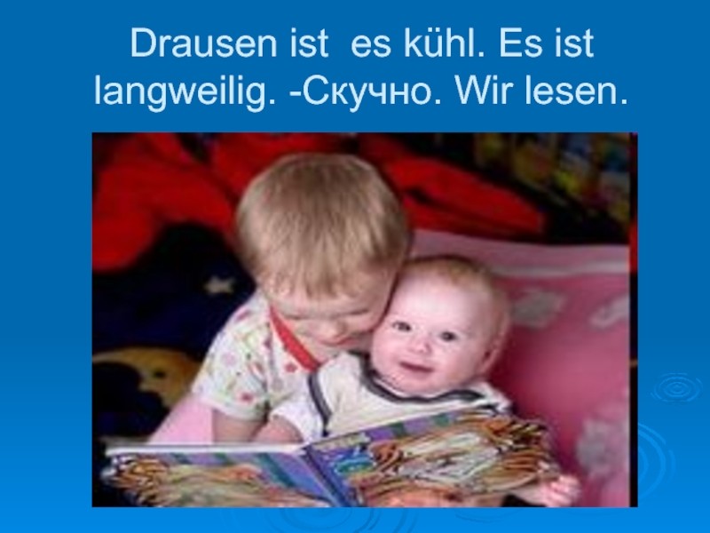 Слайд 9Drausen ist es kühl. Es ist langweilig. -Скучно. Wir lesen.