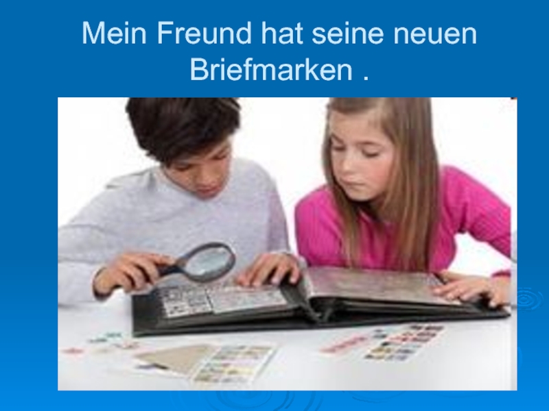 Слайд 23Mein Freund hat seine neuen Briefmarken .