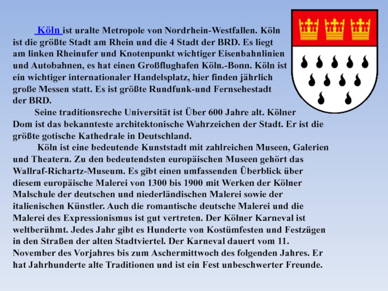 Köln liegt………..
