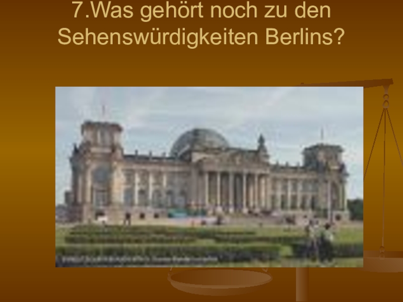 Слайд 197.Was gehört noch zu den Sehenswürdigkeiten Berlins?