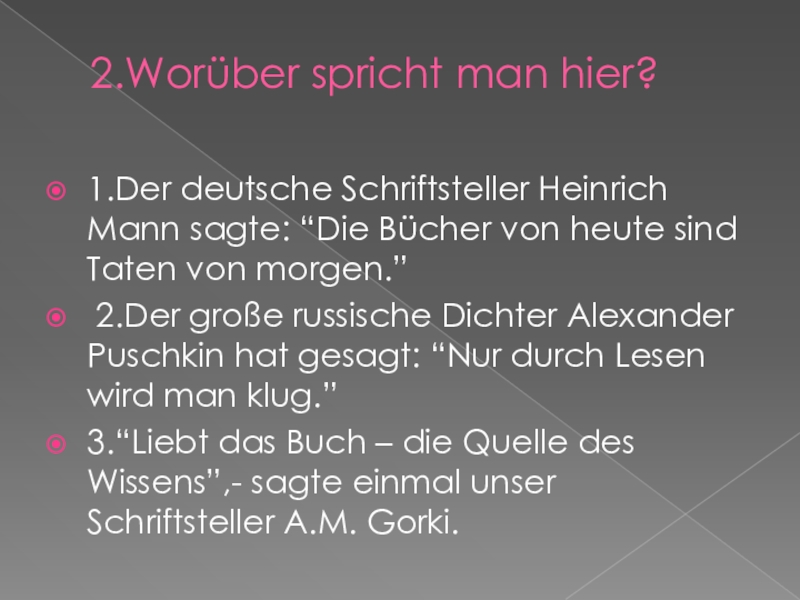 Это сайт презентаций, где можно хранить и обмениваться своими презентациями, докладами, проектами, шаблонами в формате PowerPoint с другими пользователями. Мы помогаем школьникам, студентам, учителям, преподавателям хранить и обмениваться учебными материалами.