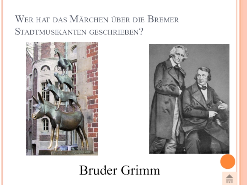 Слайд 17Wer hat das Märchen über die Bremer Stadtmusikanten geschrieben?
