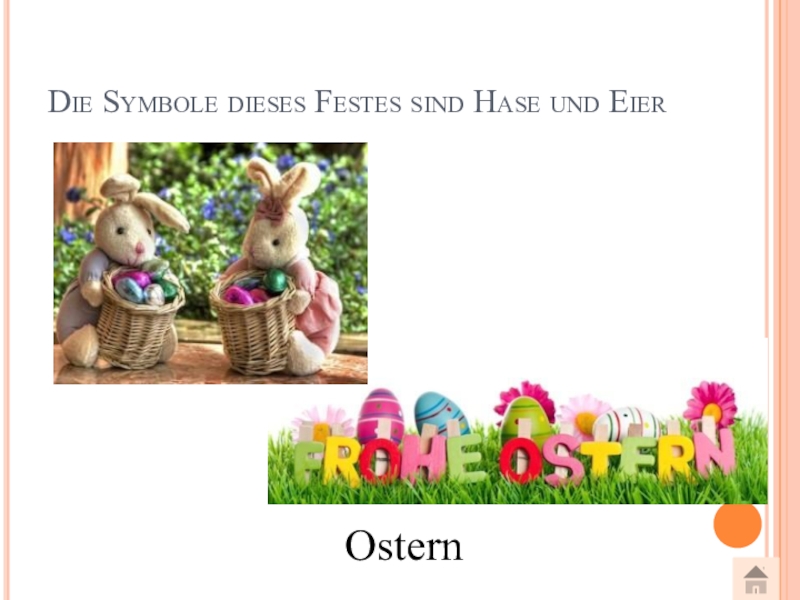 Слайд 23Die Symbole dieses Festes sind Hase und Eier