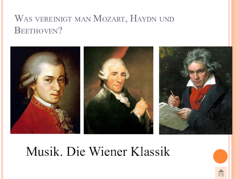 Слайд 5Was vereinigt man Mozart, Haydn und Beethoven?