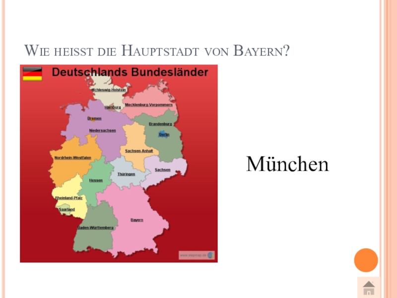 Слайд 24Wie heißt die Hauptstadt von Bayern?