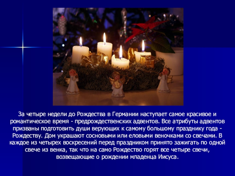 Слайд 20За четыре недели до Рождества в Германии наступает самое красивое и