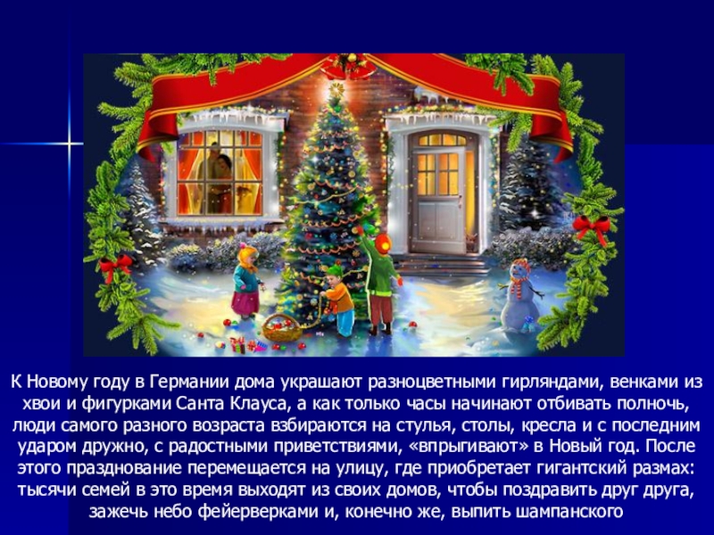 Слайд 17К Новому году в Германии дома украшают разноцветными гирляндами, венками из
