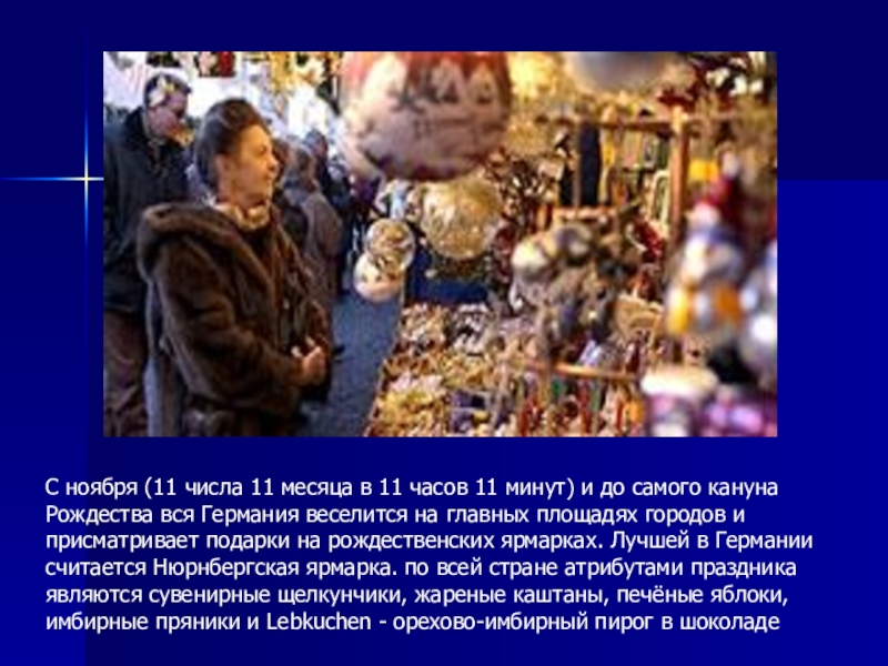 Слайд 26Рождественский базар в Нюрнберге один из самых старых в Германии. И