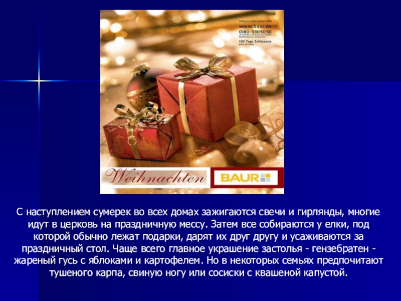 Слайд 13Рождество в Германии - главный семейный праздник года. 24 декабря для