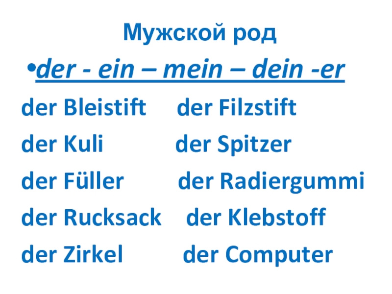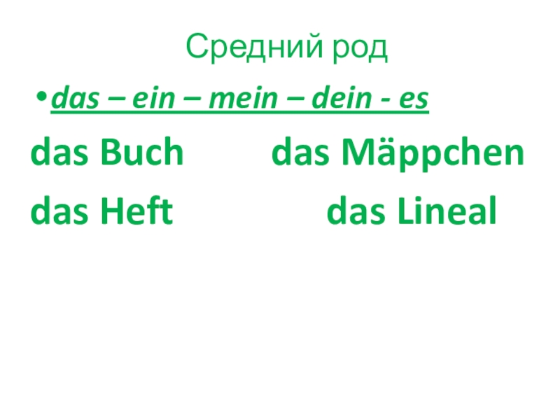 Средний родdas – ein – mein – dein - esdas Buch     das Mäppchendas