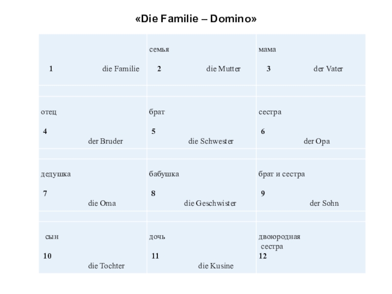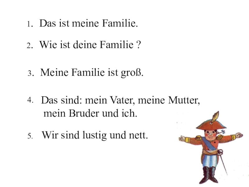 1. Das ist meine Familie.2. Wie ist deine Familie ?3. Meine Familie ist groß.4. 5.