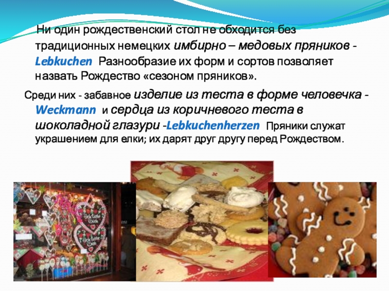 имбирно – медовых пряников - Lebkuchen Разнообразие их форм и сортов позволяет назвать Рождество «сезоном пряников».