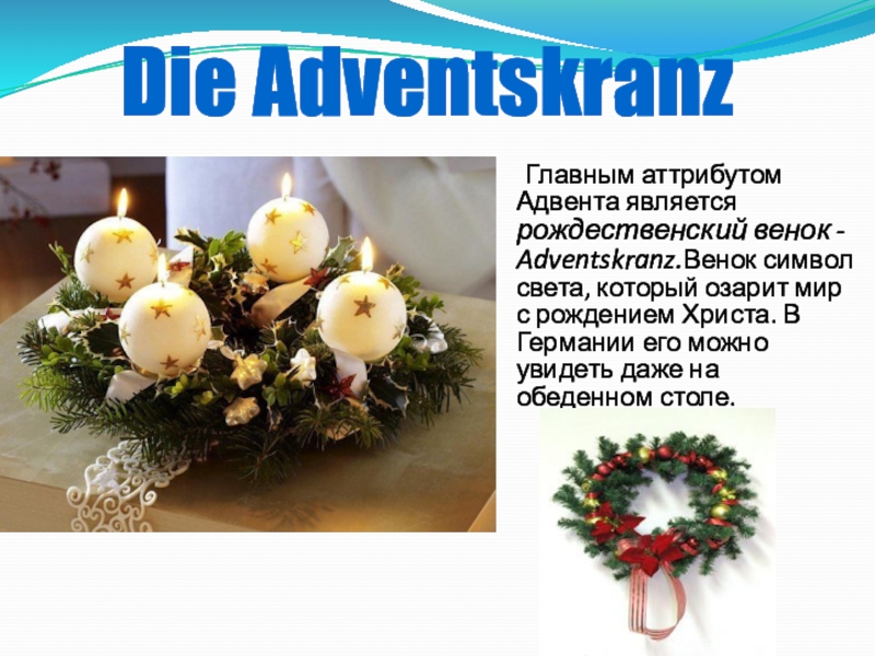 Слайд 10Advent или Adventszeit- предрождественское время до наступления Рождества