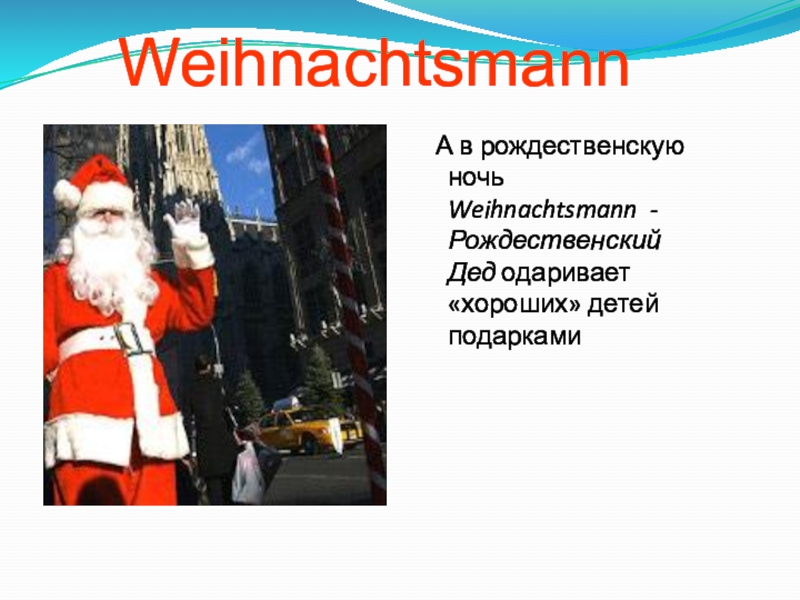 Слайд 25 А в рождественскую ночь Weihnachtsmann - Рождественский Дед одаривает «хороших»