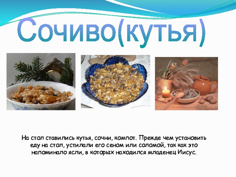 стол, устилали его сеном или соломой, так как это напоминало ясли, в которых находился младенец Иисус.