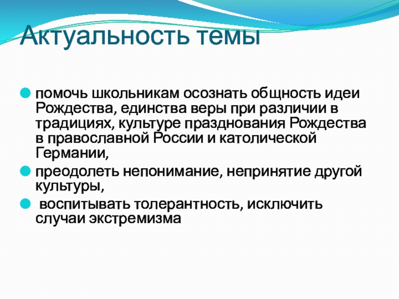 помочь школьникам осознать общность идеи Рождества, единства веры при различии