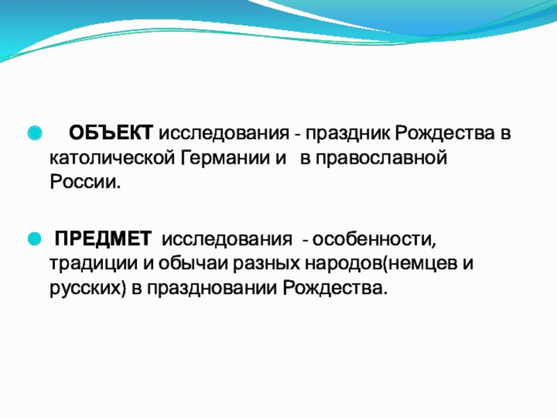 ПРЕДМЕТ исследования - особенности, традиции и обычаи разных народов(немцев и русских) в праздновании Рождества.