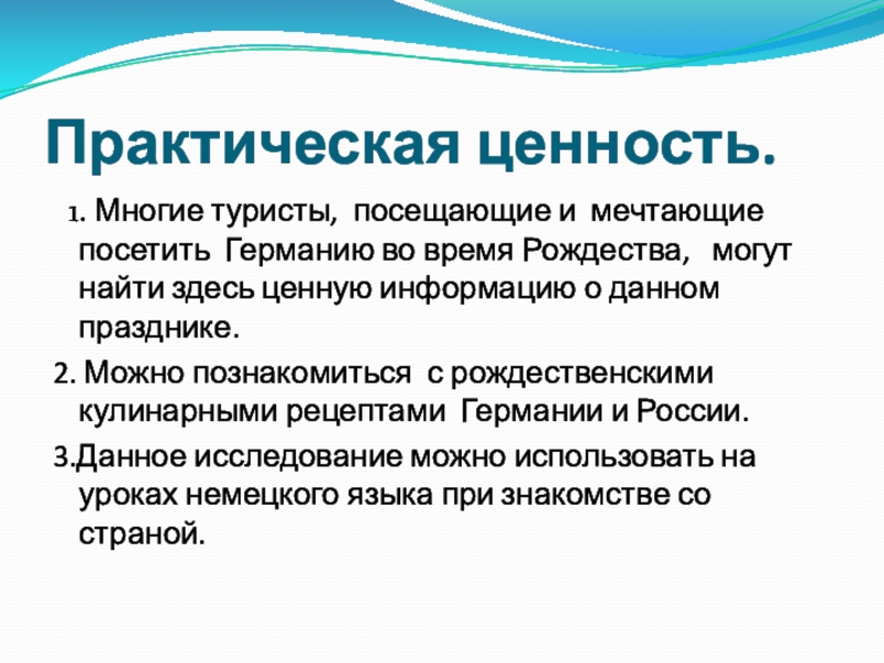 3.Данное исследование можно использовать на уроках немецкого языка при знакомстве со страной.