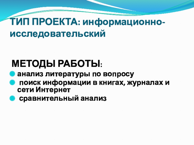 Слайд 6ТИП ПРОЕКТА: информационно-исследовательский