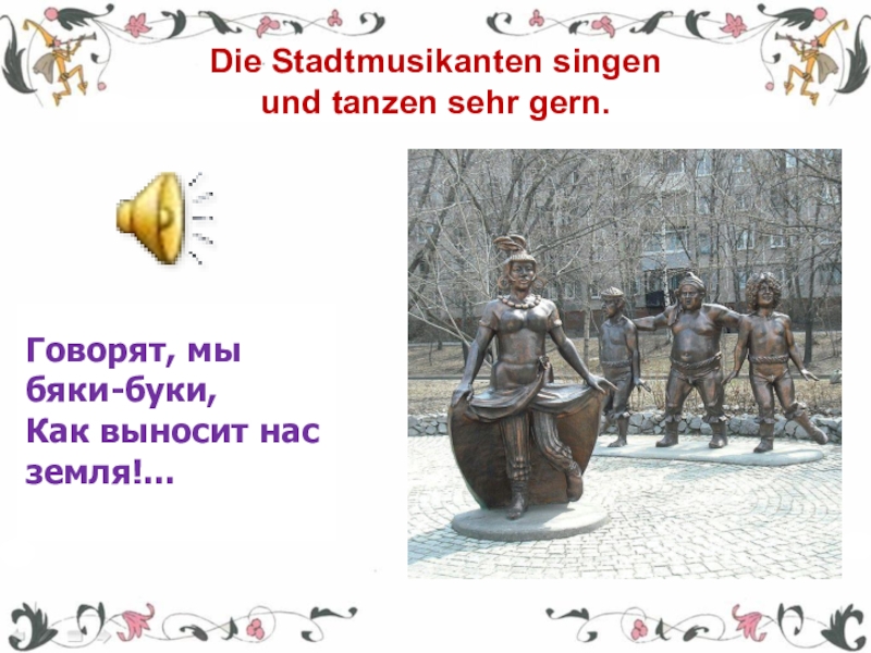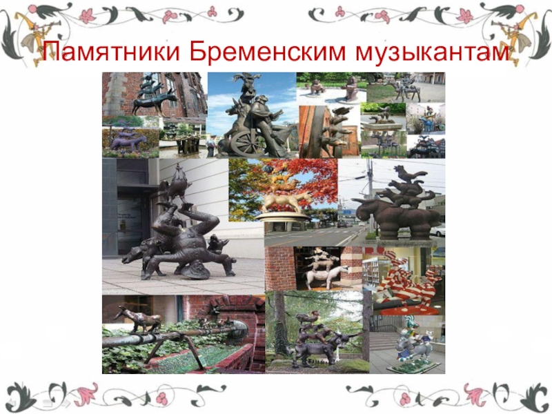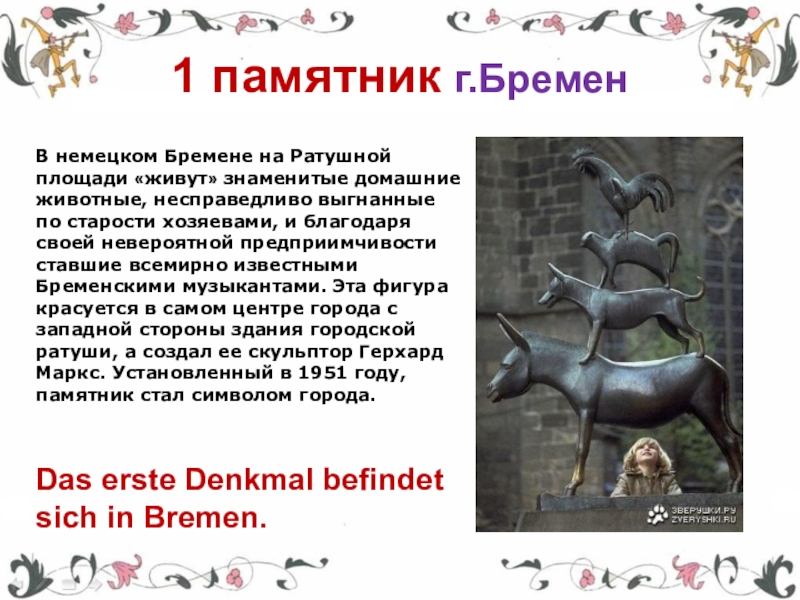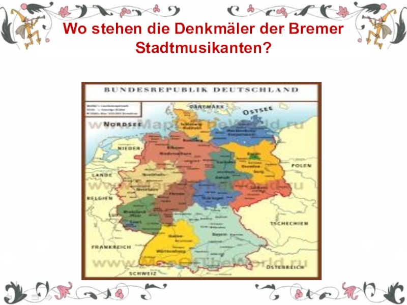 Слайд 7Wo stehen die Denkmäler der Bremer Stadtmusikanten?