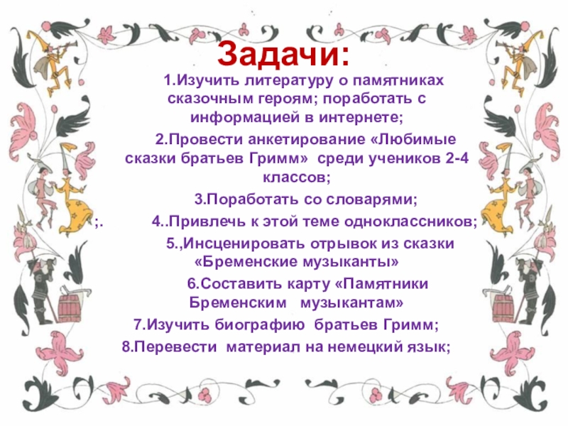 2.Провести анкетирование «Любимые сказки братьев Гримм» среди учеников 2-4 классов;