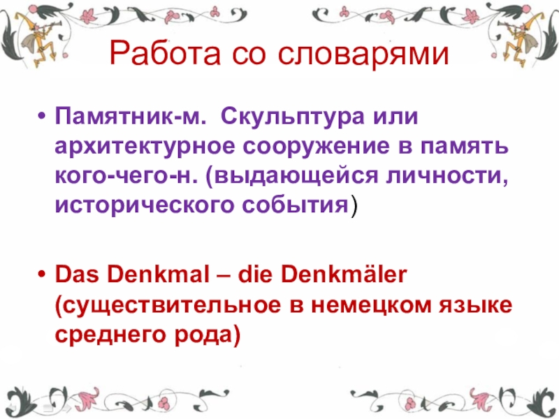 Das Denkmal – die Denkmäler (существительное в немецком языке среднего рода)