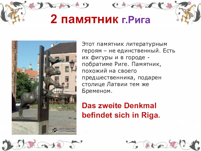 фигуры и в городе -побратиме Риге. Памятник, похожий на своего предшественника, подарен столице Латвии тем же Бременом.