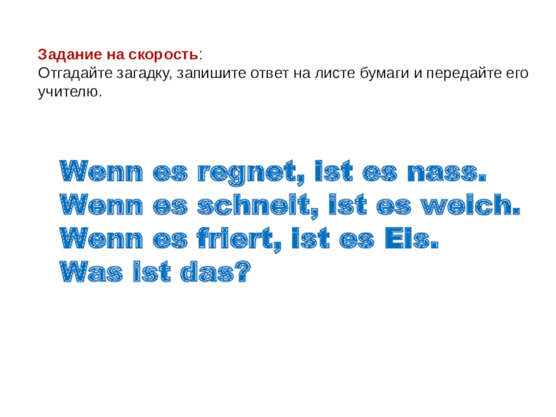 Отгадайте загадку, запишите ответ на листе бумаги и передайте его