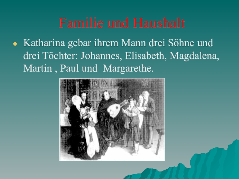 Katharina gebar ihrem Mann drei Söhne und drei Töchter: